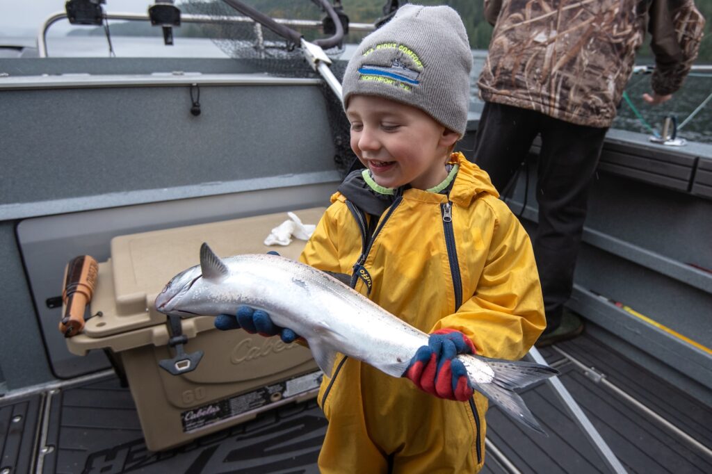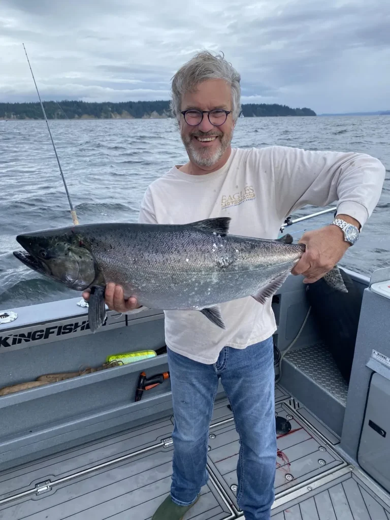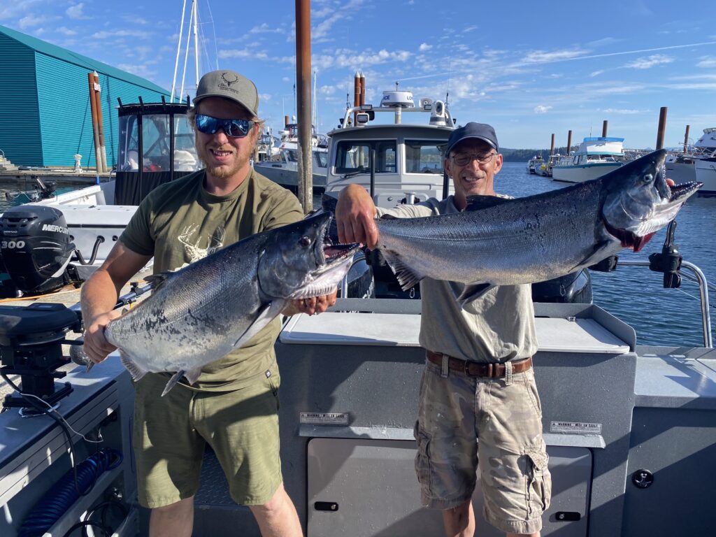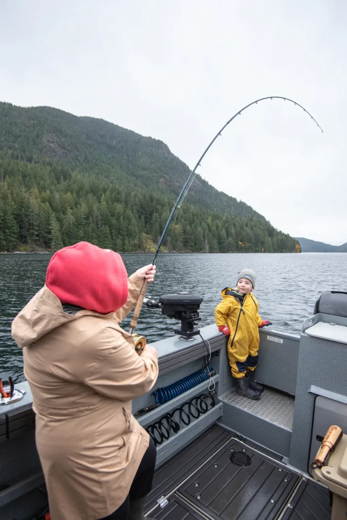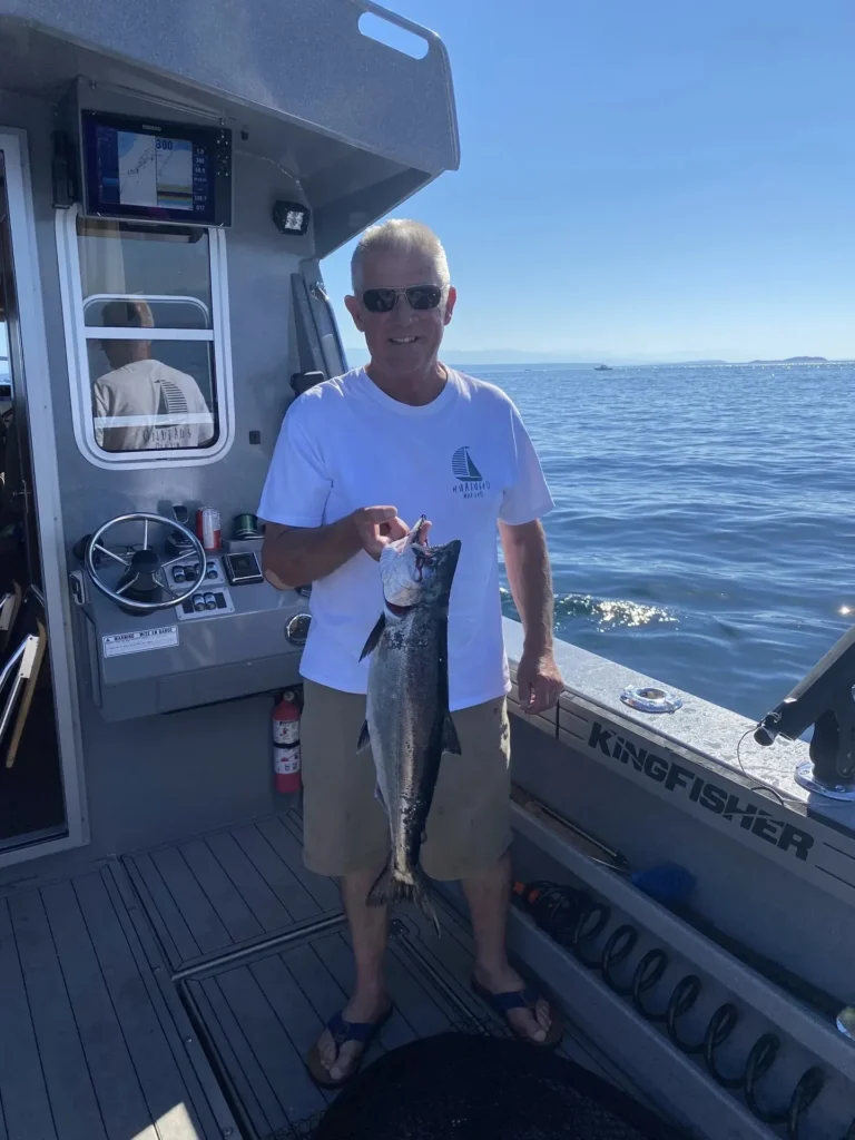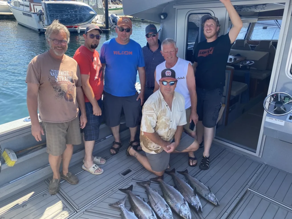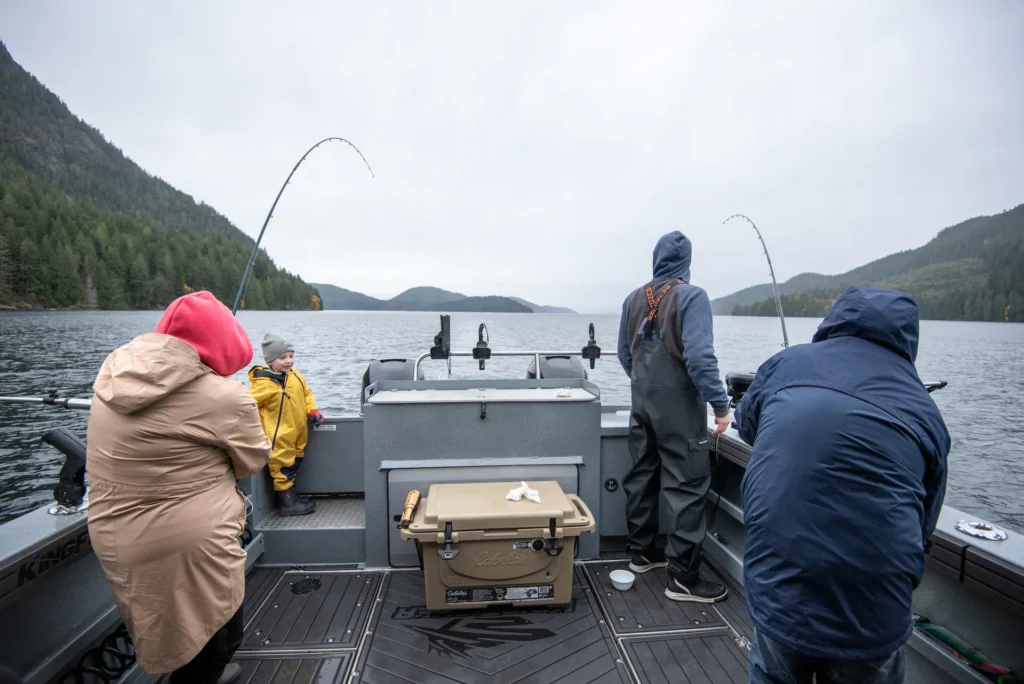 A glimpse into life on the water—early mornings, proud catches, wildlife encounters, and moments that stay with you long after the trip ends. Organize the gallery by Action (catches/experiences), the Boat (Free Bird KingFisher 3425 GFX), and Environment (the Campbell River area).